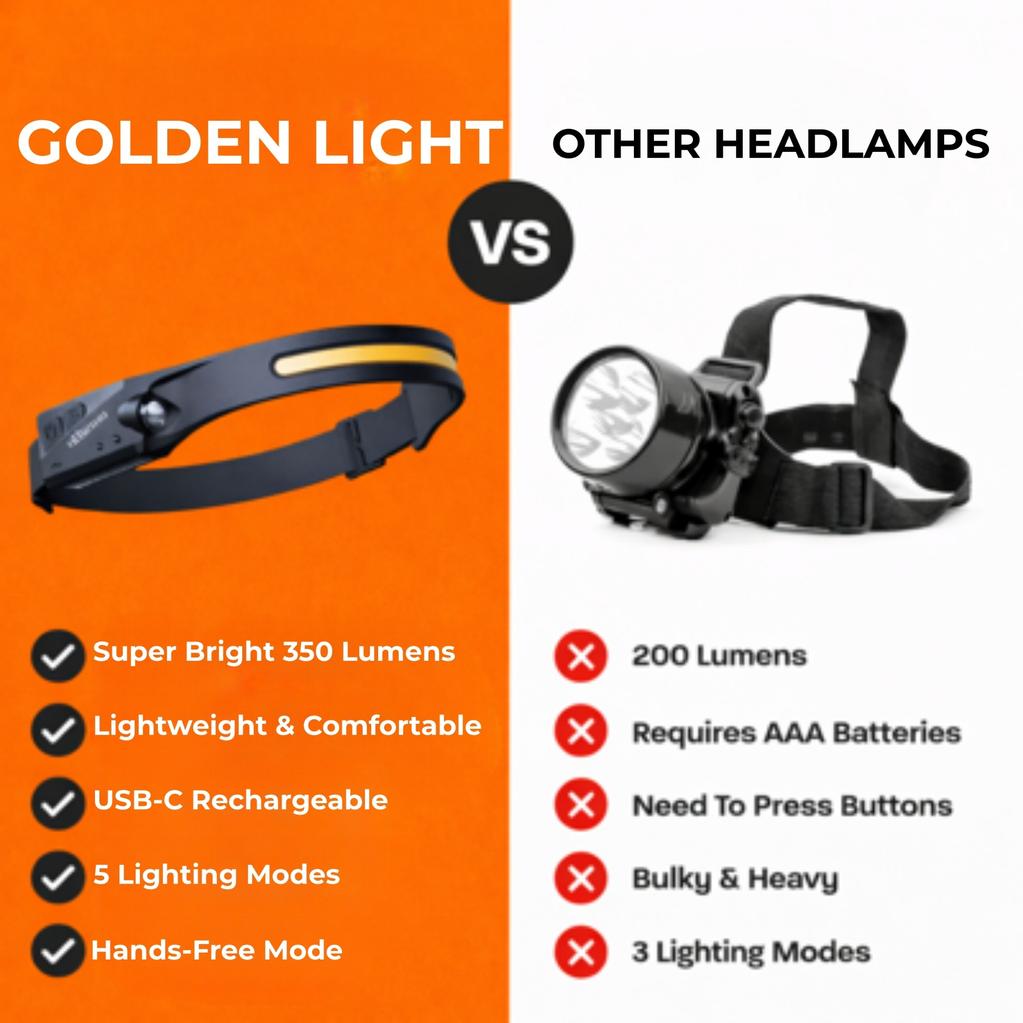 Schwere, unhandliche und engwinklige Stirnlampen gehören der Vergangenheit an. Mit GOLDEN LIGHT heben Sie Ihr Beleuchtungserlebnis auf ein neues Niveau. Dieses Produkt bietet einen verstellbaren, wasserdichten, kompakten (klein und leichten) Aufbau und einen unglaublich weitwinkligen Lichtstrahl für all Ihre Aktivitäten.